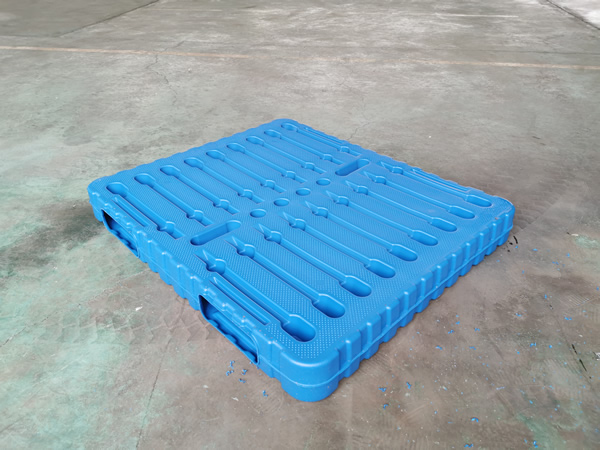 中空吹塑塑料托盤的生產與一般的中空制品吹塑成型方法相類似,因其產品較大,且為雙面型,需要較大的擠出機、合模機及模具等。目前國內中空成型機制造廠家已經研發出專業高速生產高強度吹塑托盤的超大型中空成型機,采用HDPE(低壓高密度聚乙烯)高強度塑料生產,成型速度較快,產品質量較好,具有高強度、壽命長的特點,一般吹塑托盤的使用壽命可以達到5~10年,同時可以在-40~70℃的環境下穩定工作。其產品的動載可以達到3t以上,抗彎強度均是較高的水平。是高強度使用環境的首選托盤,目前其價格比注塑托盤偏高一些,但其使用壽命特別長,所以它的性價比是所有托盤中最高的。吹塑托盤隨著成型設備價格的大幅度降低,將會在近年內獲得較快的發展。將對于節約有限的石油資源與物流成本有極大的好處。